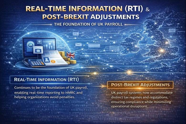- Real-Time Information (RTI): Continues to be the foundation of UK payroll, enabling real-time reporting to HMRC and helping organizations avoid penalties.